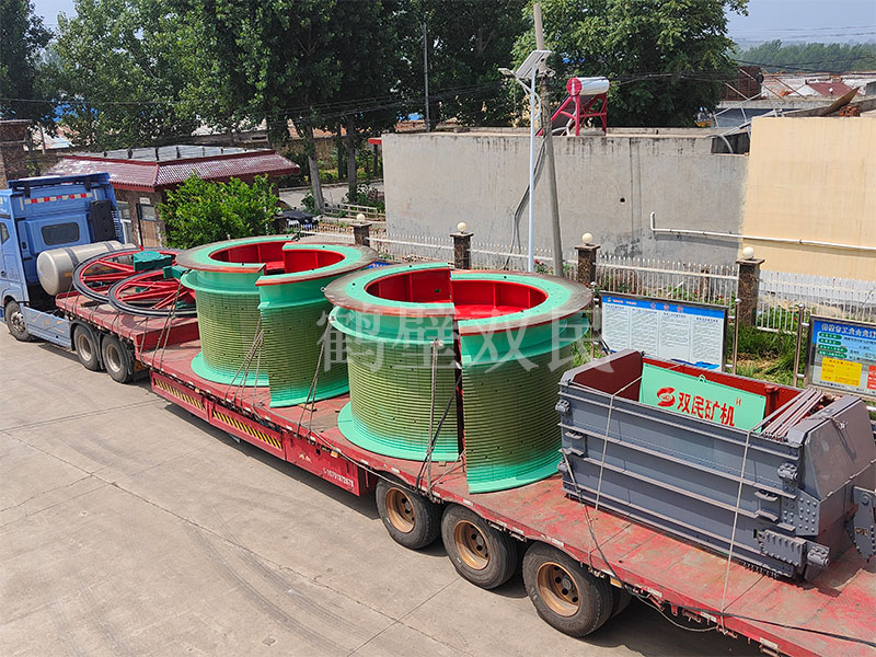 鑿井絞車廠家鶴壁雙民發(fā)往新疆的3米雙筒礦井提升機(jī)裝車出貨!