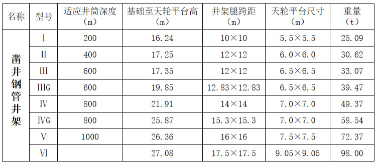 立井鑿井鋼井架系列主要采用鋼管、型鋼等焊接或螺栓連接而成,可滿足井井3.5-11m,井深200-1000m的立井井筒施工及其工藝要求,在滿足強度、剛度和穩定性的同時,做到機構合理,加工制