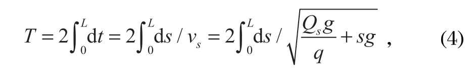 振動波周期法是依據(jù)振動波在鋼絲繩上的傳遞速度和鋼絲繩張力的關(guān)系,通過速度傳感器測量鋼絲繩振動波周期,得到傳遞速度,進而計算出鋼絲繩張力。