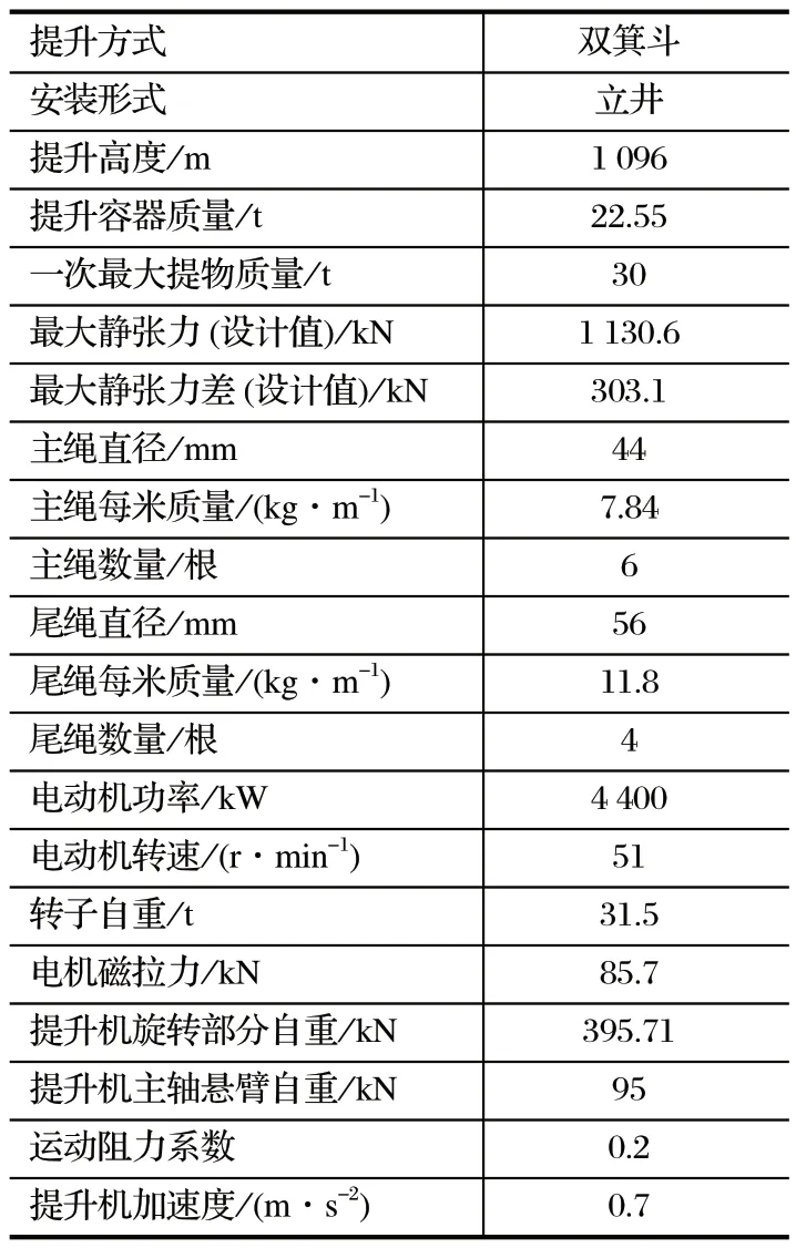 本研究以某礦 JKM-4.5×6PⅢ多繩摩擦式提升機為例,該提升機由中信重工機械股份有限公司設計制造,其系統參數如表1 所列。主軸傳動側采用 FAG雙列調心滾子軸承,軸承型號為 240/1060BK30.MB(FAG),軸承當量動載荷 Cr=18 600 kN,e =0.27,Y=2.47。