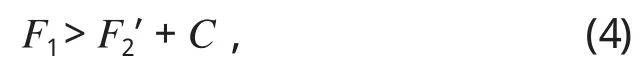 如圖1所示,F1為油壓力,F2為彈簧預壓縮力。顯而易見,盤形制動器是靠油壓力 F1松閘,彈簧預壓縮力 F2制動來實現其功能的。