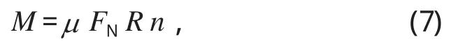式中:μ 為摩擦因數;R 為制動半徑,m;n 為閘瓦個數。