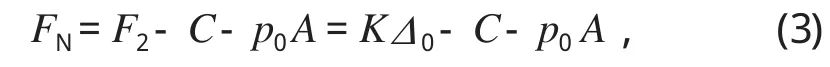 式中:F2′為油壓力 p=pn時碟簧的壓縮力,N;Δ′為油壓力 p=pn時碟簧的壓縮量,m。